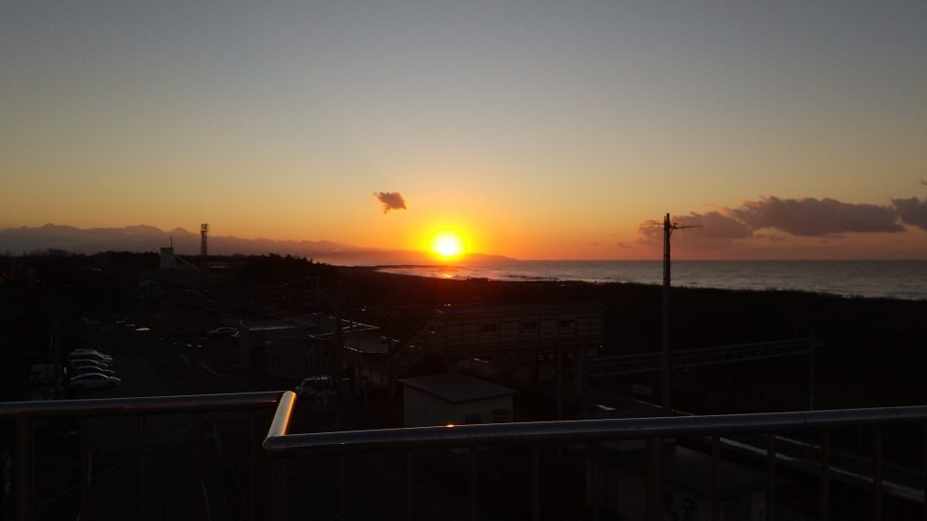 新潟県の冬では貴重な夕日です。 屋上に上がるとトンボが1匹飛んでいました。 頑張って長生きしてほしいな~ 今年もあと2週間ですね。 年賀状書かなくちゃ